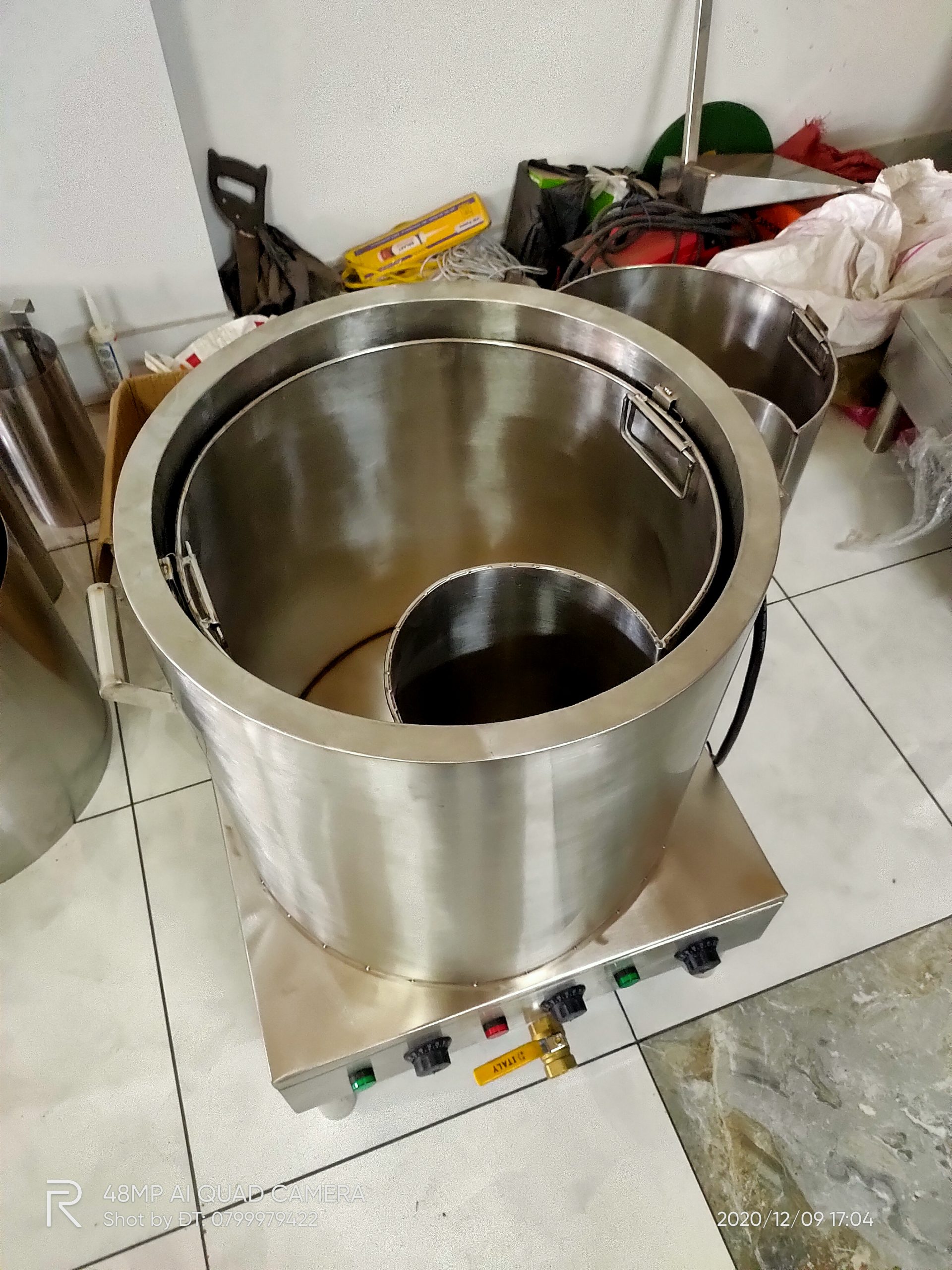 Bộ nồi nấu cháo bằng điện inox 304 với thành nồi dày lên đén 5 phân gồm 3 lớp , được đun cách thủy bằng một lớp dầu (dầu ăn) dùng dầu để làm nóng giúp cháo chống khê, cùng với đó dầu còn giúp ủ giữ cháo mau nhừ , thời gian ủ được lâu hơn, tiết kiêm ,dễ sử dụng , vệ sinh dê dàng hơn .